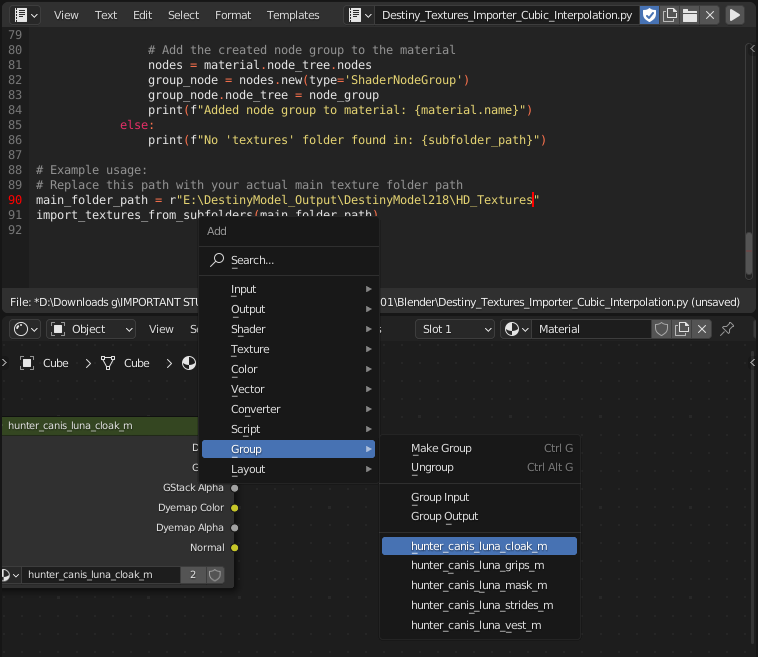 Easy importer for Destiny 2 Texture sets into a fully named NodeGroup that simplifies your importing process.